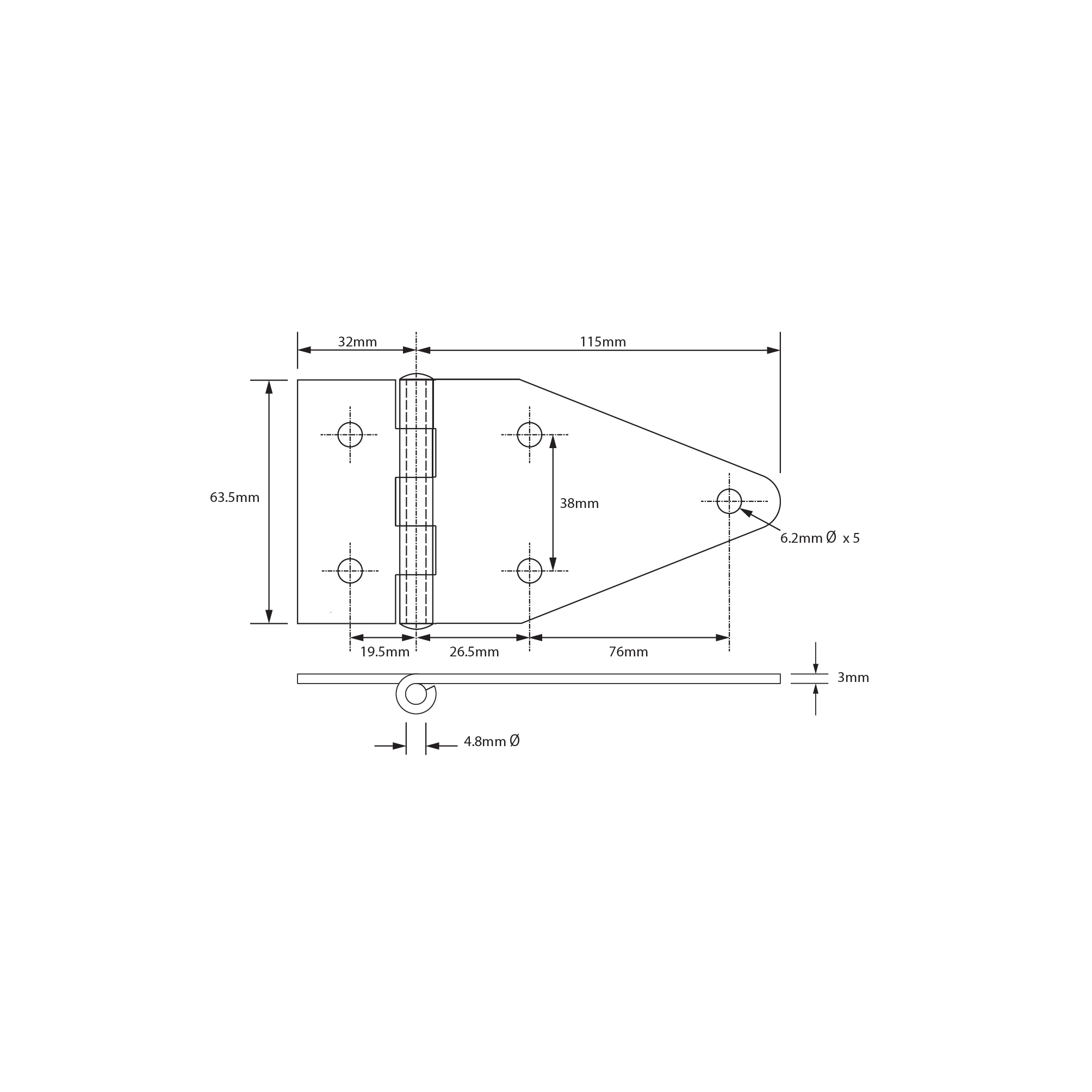A heavy duty hinge supplied with riveted pins and with or withour holes